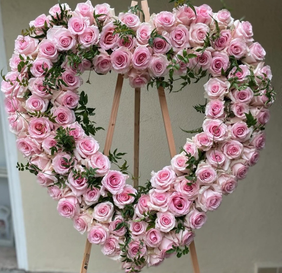 Pink Rose Heart with Green Foliage