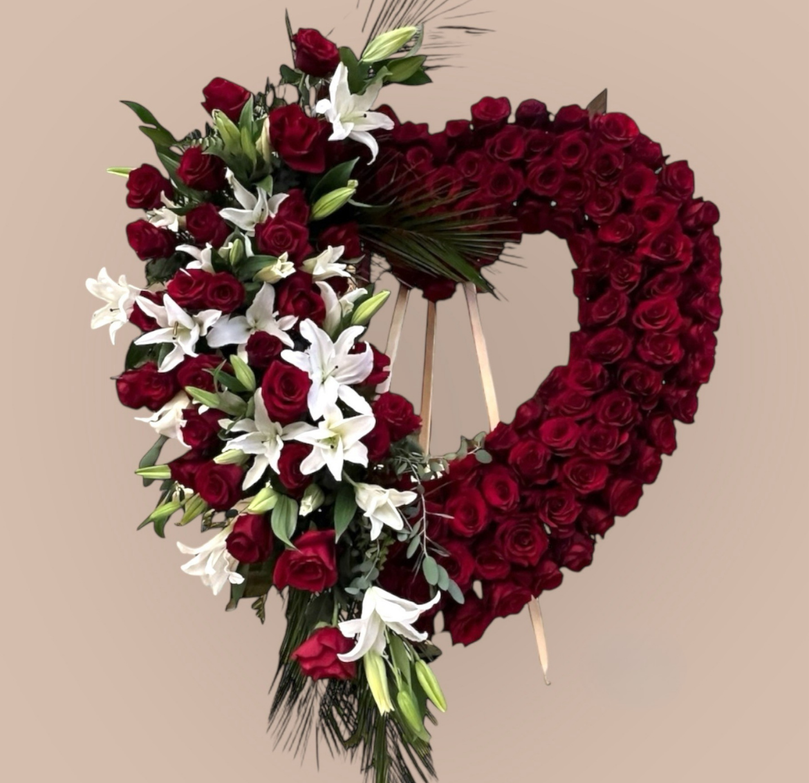 Red Rose Heart with White Lily Accents
